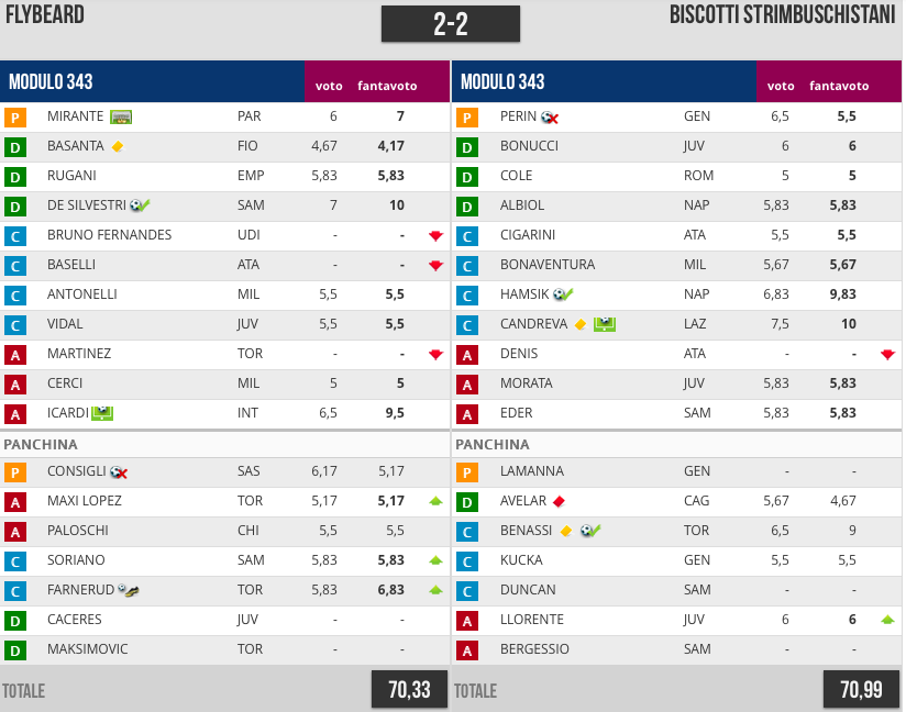 E’ impressionante soprattutto notare come le sue scelte di alternare i giocatori d’attacco nella 3°,4° e 6° giornata, con la speranza di indovinarne uno in stato di grazia, si siano rivelate vane. Chiunque schierasse aveva una media intorno al 5, mentre chi veniva relegato in panchina non solo faceva bene, ma strafaceva: Gol e assist come se non ci fosse un domani.