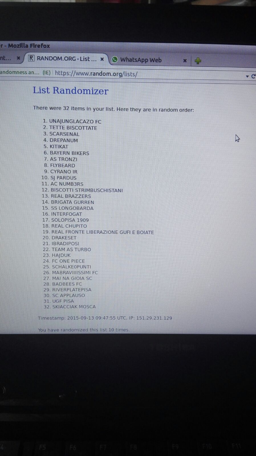 - le restanti 32 squadre sono state estratte nei vari gironi tramite il sito random.org