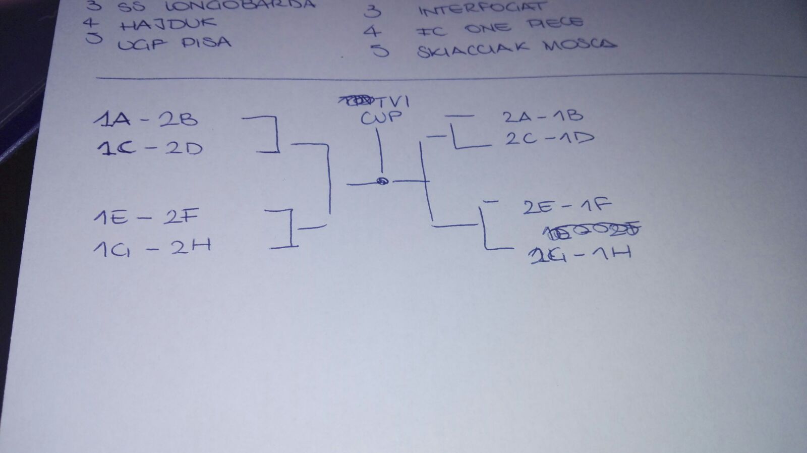 - 8 teste di serie in funzione dell’andamento della Coppa Italia TVI dello scorso anno. Queste le teste di serie: Evribadi (1), Bayer 04 Pappiana (2), Mojito FC (3), CS Riposa (4), Nedved FC (5), AC Denti (6), MC Town (7), Marcellona FC (8)