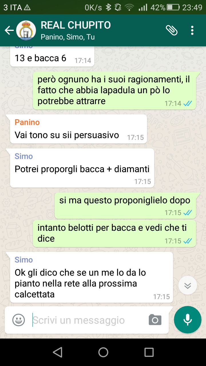 Real Chupito è spuntato! In attacco ha scommesso tutto su Bacca che non sta rispettando le aspettative e su Milik ai box dalla 3° giornata di campionato. Gabbiadini se ne è andato in Premier, Melchiorri è rotto. L’unico che ha iniziato a giochicchiare è Iturbe, ma i 5 l’accompagnano costantemente sulle pagelle della rosea. Servirebbe una punta che garantisca titolarità e gol: uno come Belotti. Il presidente è un amico con cui ogni tanto giocano a calcetto. La trattativa è difficile, però non si sa mai magari si può trovare un altro appiglio per convincerlo…
