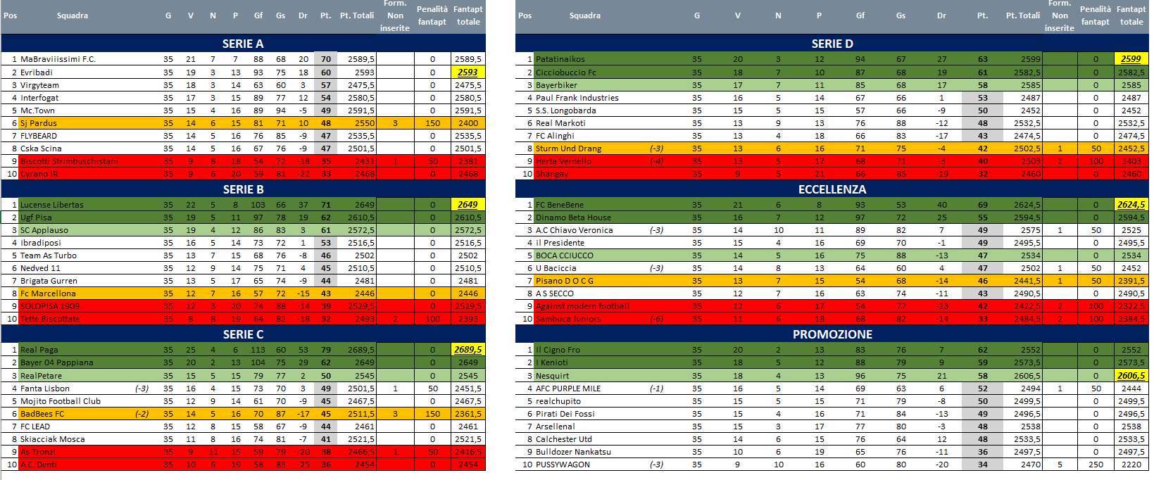 - MA BRAVIIISSIMI FC: 80 + Coppa (1° posto)