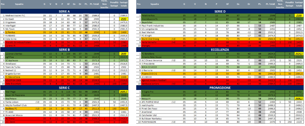 Ecco i verdetti della stagione 2021/2022>