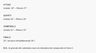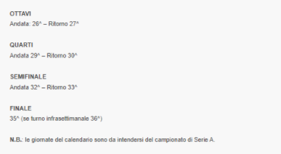 Questo invece il calendario delle giornate di Serie A in cui si giocheranno i turni dagli ottavi fino alla finale: