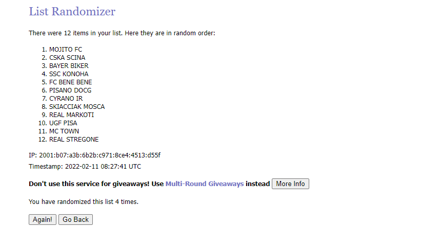 a seguito dell’estrazione su random.org delle squadre non teste di serie (tds):