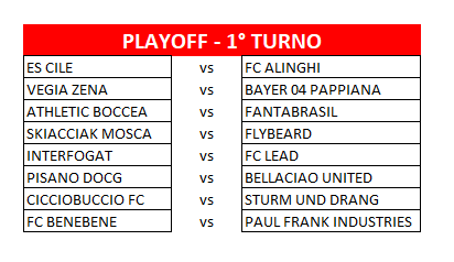 Dopo estrazione su random.org ecco gli accoppiamenti del 1° turno di playoff: