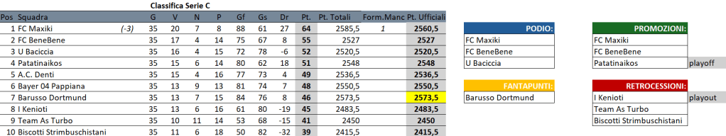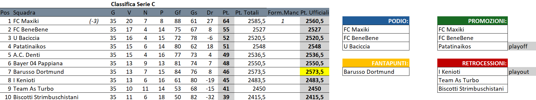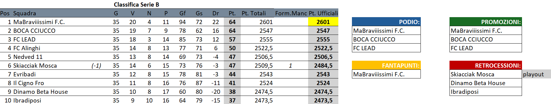 - MA BRAVIIISSIMI FC: 150 (1° + miglior fantapunteggio)