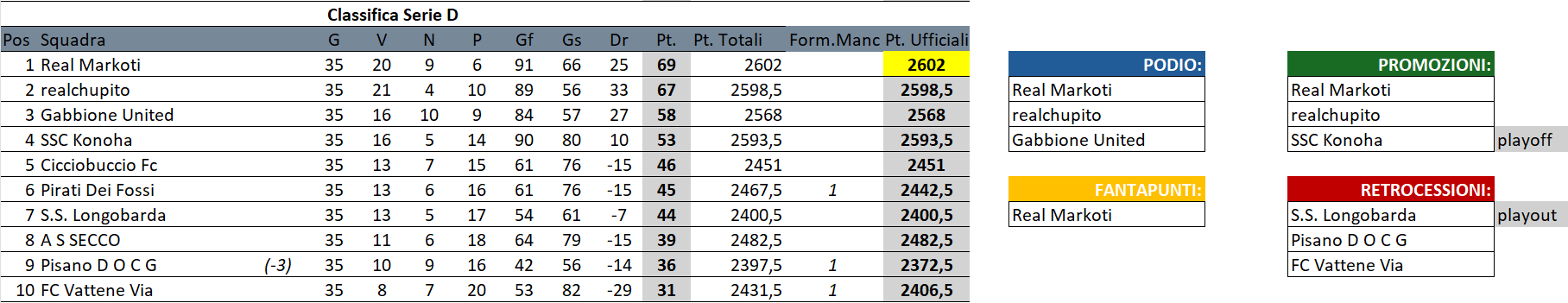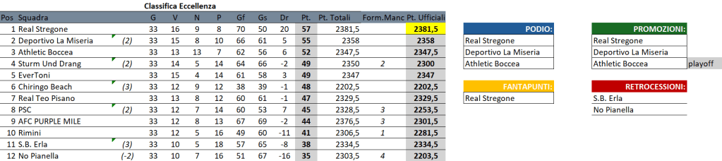 - FC BENEBENE: 85 (2° posto + finalista coppa italia)