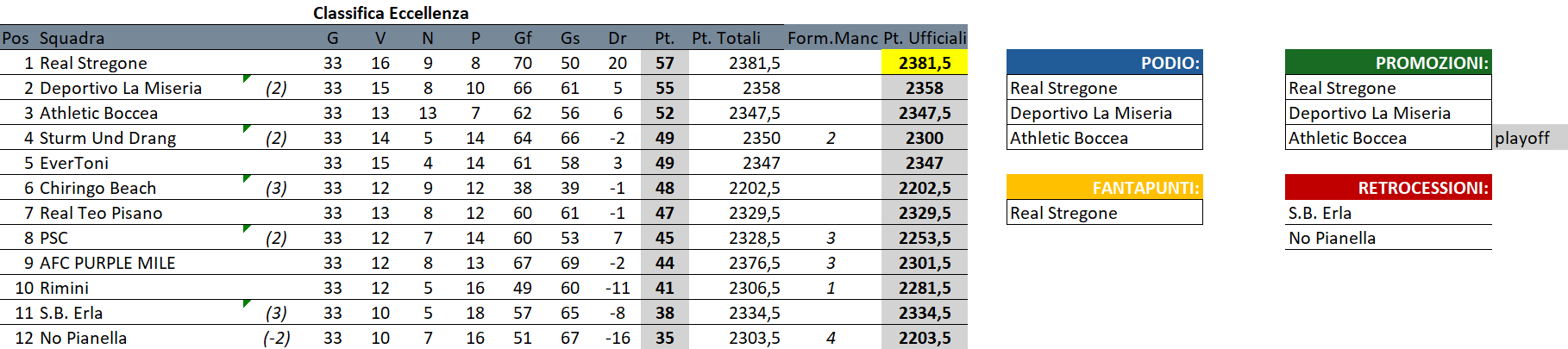 - REAL STREGONE: 135 (1° + miglior fantapunteggio)