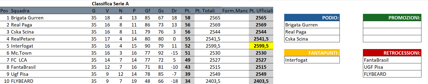 - INTERFOGAT: 25 (miglior fantapunteggio)