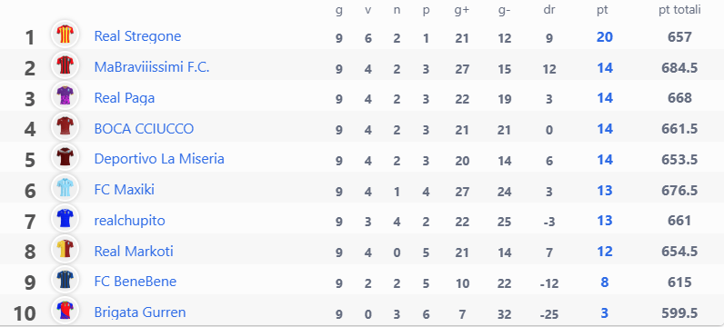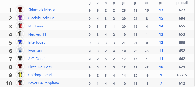 Queste le classifiche: